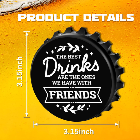 The Best Drinks Are With Friends - Designer Beer Bottle Opener Magnet for Refrigerator, Gifts for Beer Lovers, Black