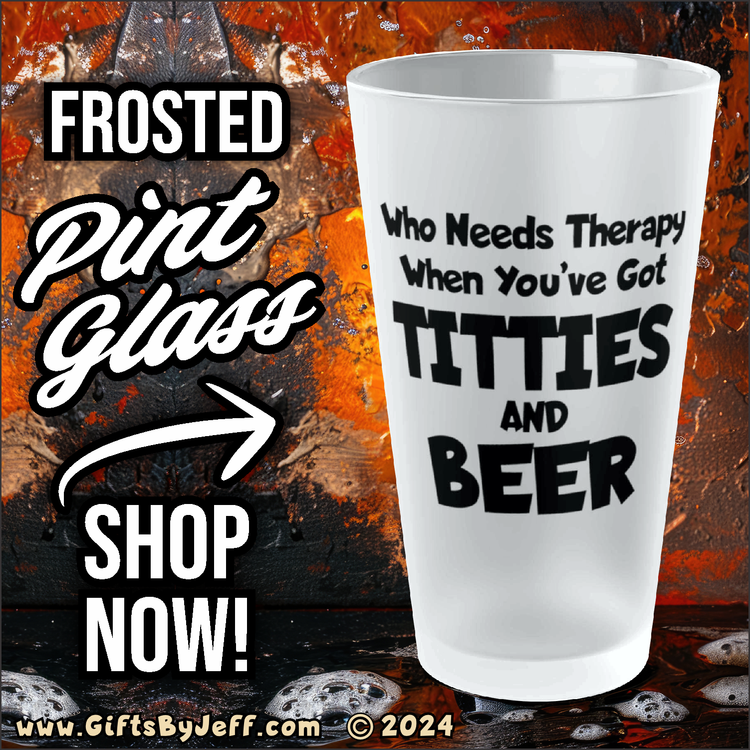 Who Needs Therapy When You’ve Got Titties And Beer? - Frosted Pint Glass, 16oz