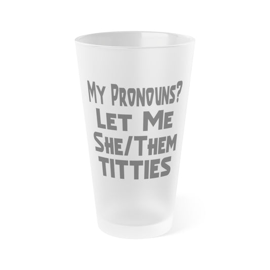 My Pronouns? Let Me She/Them Titties - Frosted Pint Glass, 16oz