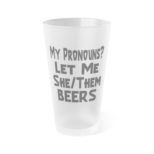 My Pronouns? Let Me She/Them Beers - Frosted Pint Glass, 16oz