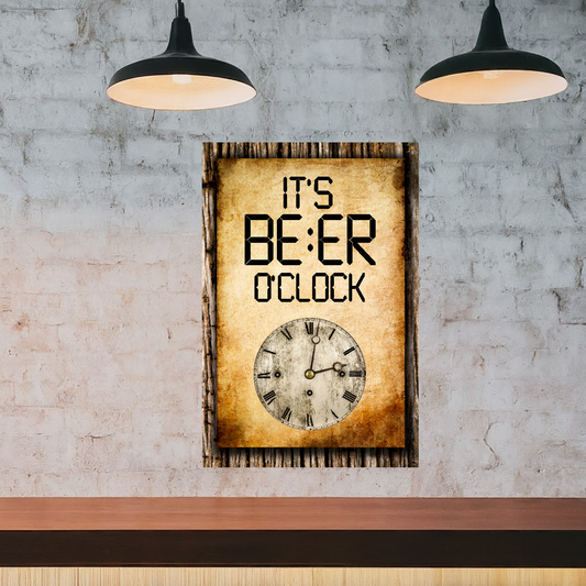 It's BEER O'clock (Paper) - 12" x 18" Vintage Metal Sign