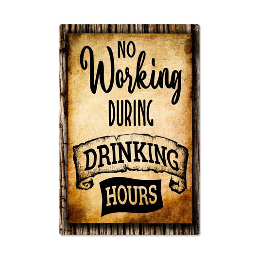 No Working During Drinking Hours - 12" x 18" Vintage Metal Sign