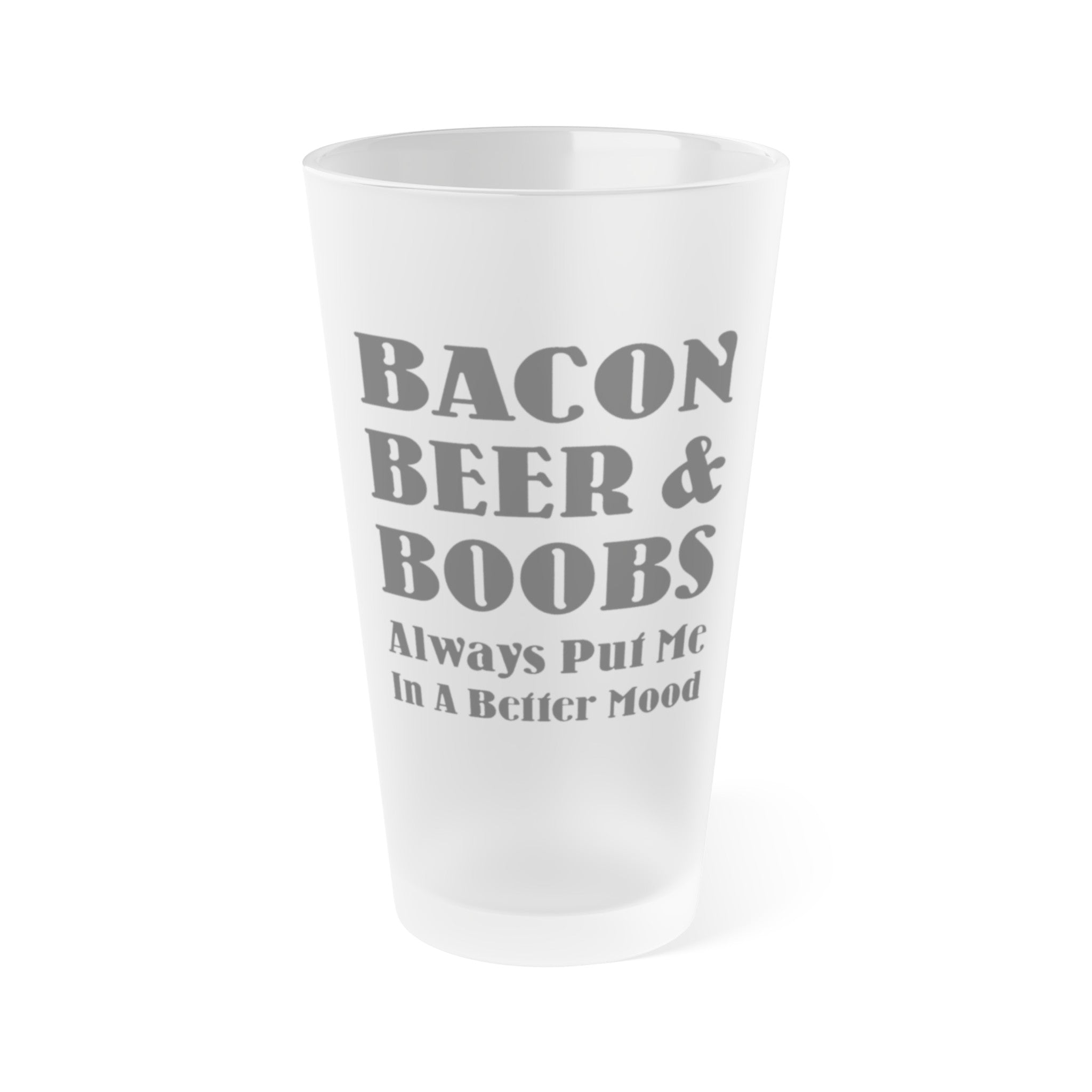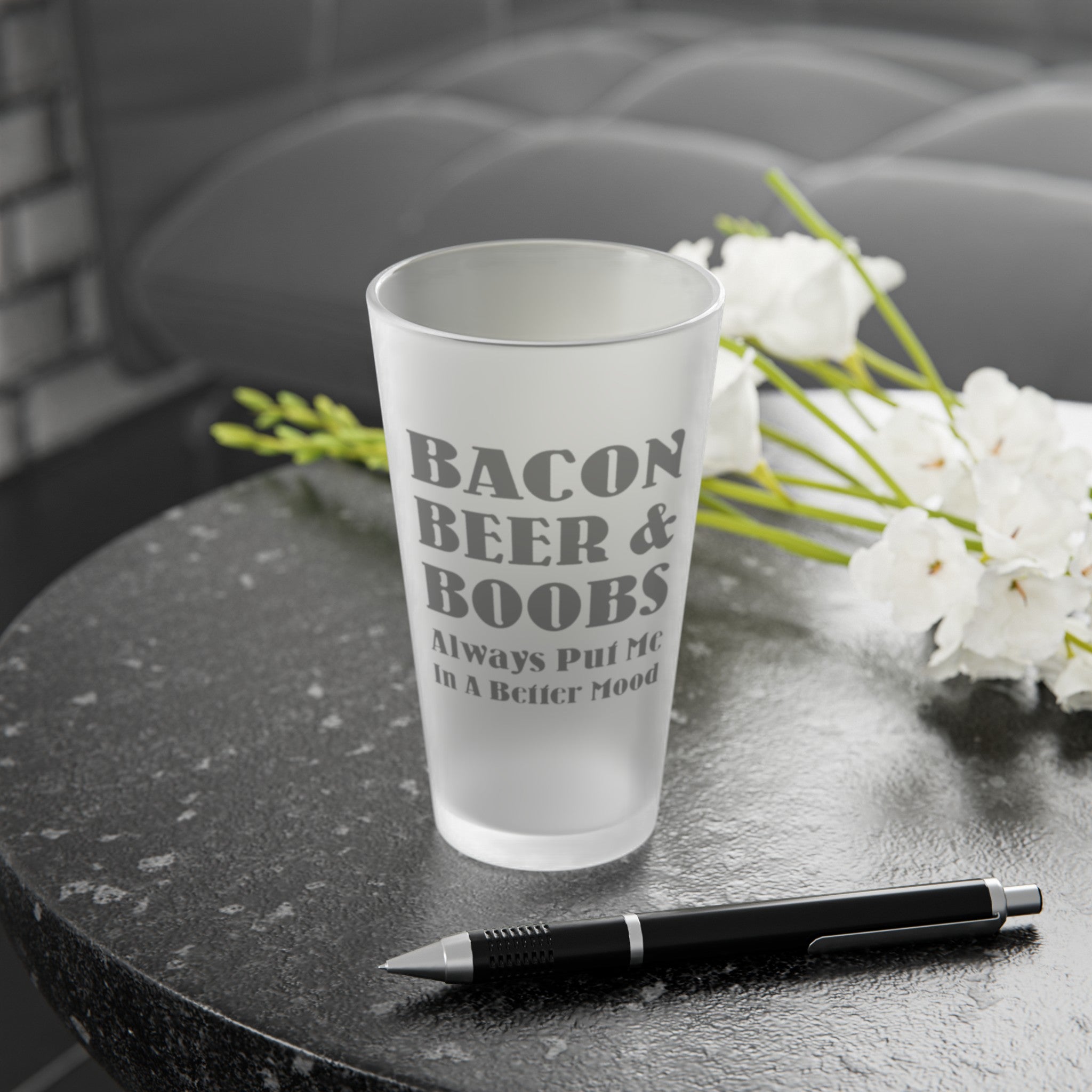 Bacon, Beer, and Boobs Always Put Me In A Better Mood - Frosted Pint Glass, 16oz